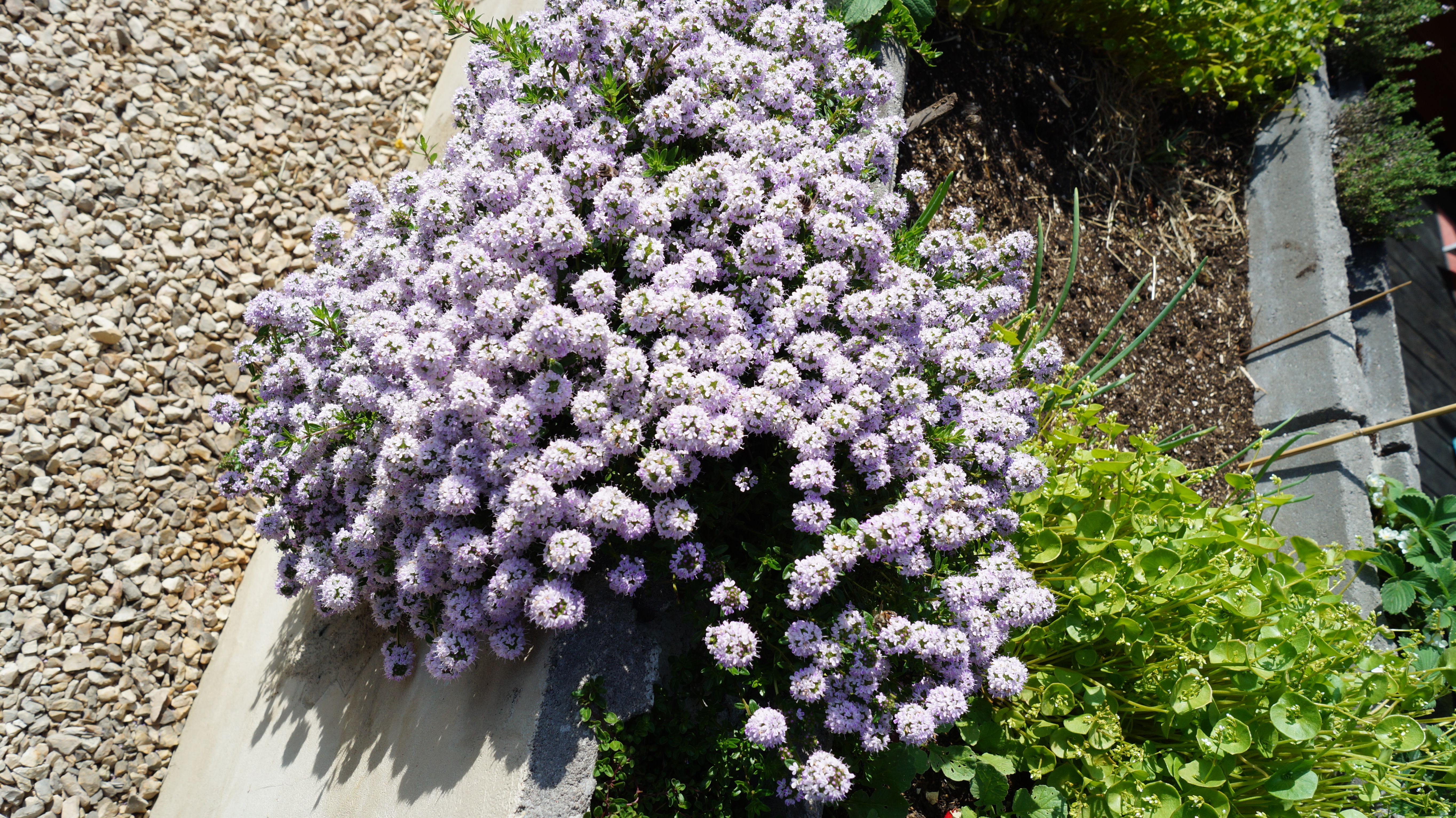 wir haben in unserem Betonhochbeet ein Bergbohnenkraut was seit 2 Wochen nur aus Blüten besteht.